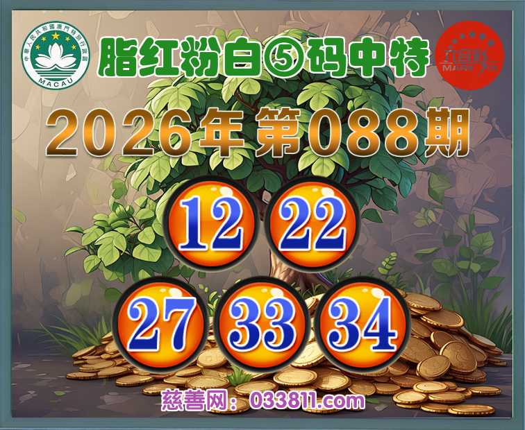 088期:【脂红粉白】 🥼⑤码中特🥼【12.22.27.33.34】开:27