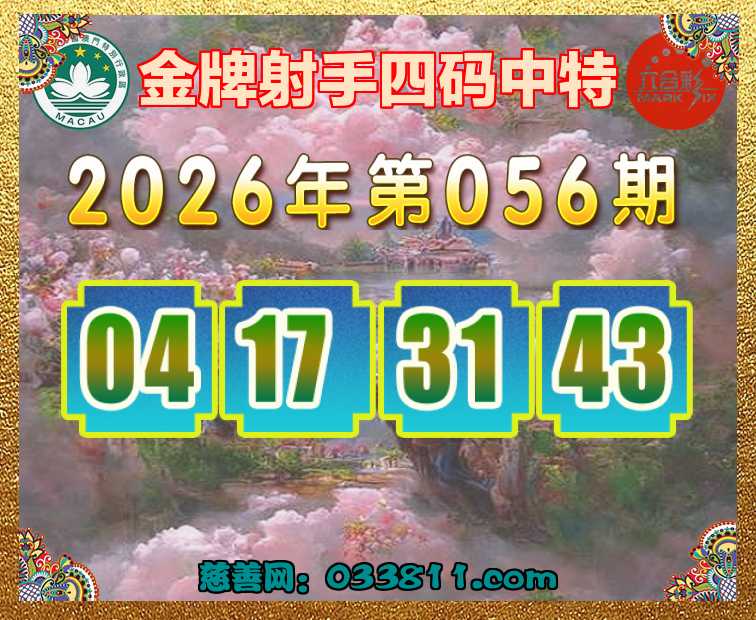 056期:〖金牌射手〗 ✂️四码中特✂️【04.17.31.43】开:48